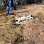 何をしているところでしょうか・・・? 排水管の詰り除去で呼ばれましたが、 高圧洗浄をして配管を辿ったところ、 マンホールが陥没しており 一生懸命土砂や木の根っこを取り除きました。